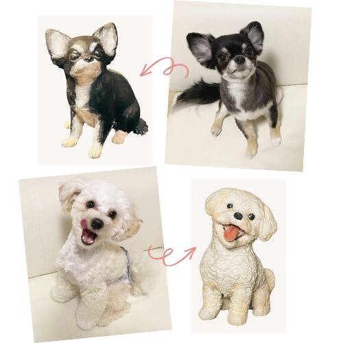 写真が1枚あればかわいいペットのフィギュアが作れます!愛犬・愛猫の愛くるしい姿を永遠に残せるサービスです。